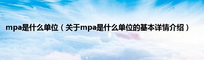 本文关于mpa是什么单位的基本详情介绍就讲解完毕,希望对大家有所帮助。