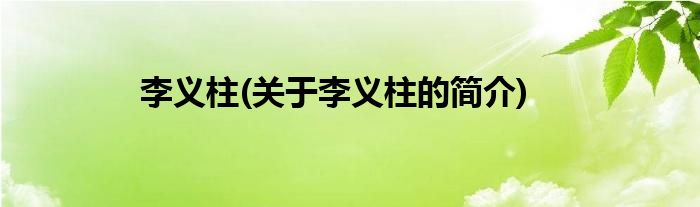 本文关于李义柱的简介就讲解完毕,希望对大家有所帮助。