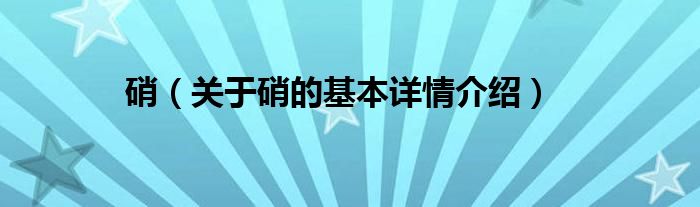 本文关于硝的基本详情介绍就讲解完毕,希望对大家有所帮助。