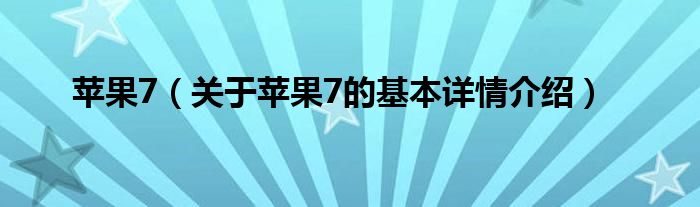 本文关于苹果7的基本详情介绍就讲解完毕,希望对大家有所帮助。