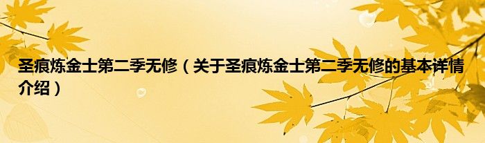 圣痕炼金士第二季无修(关于圣痕炼金士第二季无修的基本详情介绍)