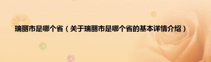本文关于瑞丽市是哪个省的基本详情介绍就讲解完毕,希望对大家有所帮助。