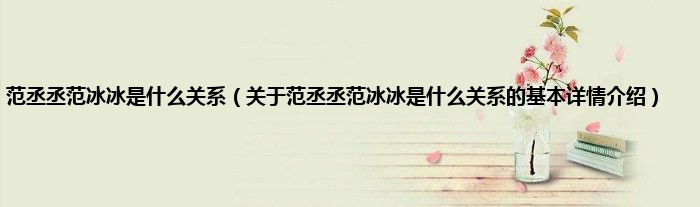 本文关于范丞丞范冰冰是什么关系的基本详情介绍就讲解完毕,希望对大家有所帮助。