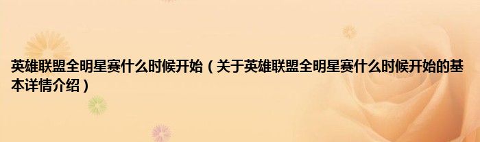 本文关于英雄联盟全明星赛什么时候开始的基本详情介绍就讲解完毕,希望对大家有所帮助。