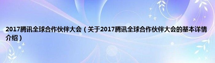 本文关于2017腾讯全球合作伙伴大会的基本详情介绍就讲解完毕,希望对大家有所帮助。