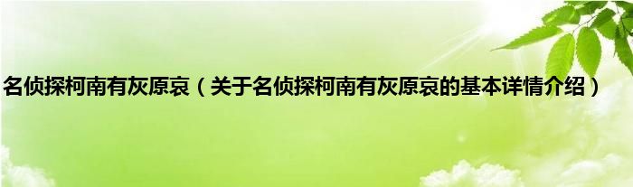 本文关于名侦探柯南有灰原哀的基本详情介绍就讲解完毕,希望对大家有所帮助。