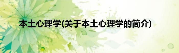本文关于本土心理学的简介就讲解完毕,希望对大家有所帮助。