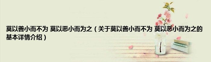 本文关于莫以善小而不为 莫以恶小而为之的基本详情介绍就讲解完毕,希望对大家有所帮助。