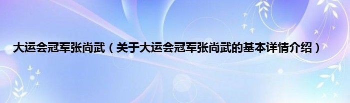 本文关于大运会冠军张尚武的基本详情介绍就讲解完毕,希望对大家有所帮助。
