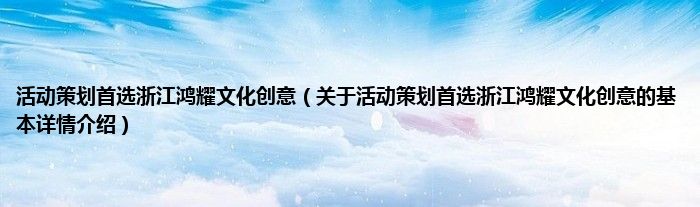 本文关于活动策划首选浙江鸿耀文化创意的基本详情介绍就讲解完毕,希望对大家有所帮助。
