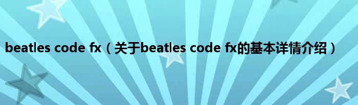 本文关于beatles code fx的基本详情介绍就讲解完毕,希望对大家有所帮助。