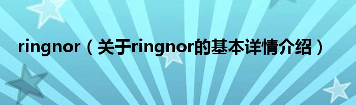 大家好我是小蝌蚪,ringnor,关于ringnor的基本详情介绍很多人还不知道,那么现在让我们一起来看看吧!