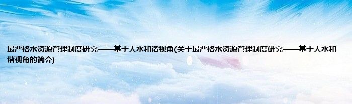 本文关于最严格水资源管理制度研究——基于人水和谐视角的简介就讲解完毕,希望对大家有所帮助。