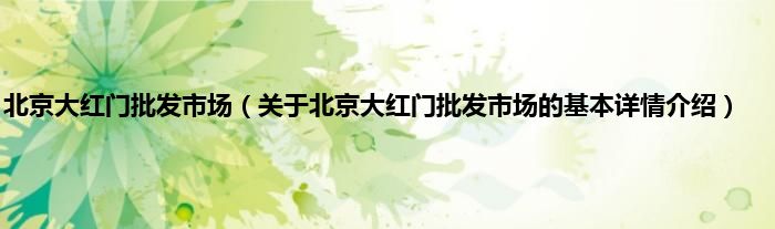本文关于北京大红门批发市场的基本详情介绍就讲解完毕,希望对大家有所帮助。