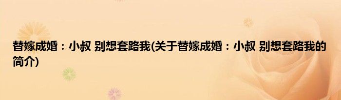 本文关于替嫁成婚:小叔,别想套路我的简介就讲解完毕,希望对大家有所帮助。