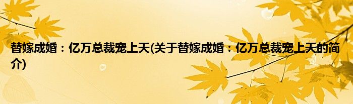 本文关于替嫁成婚:亿万总裁宠上天的简介就讲解完毕,希望对大家有所帮助。