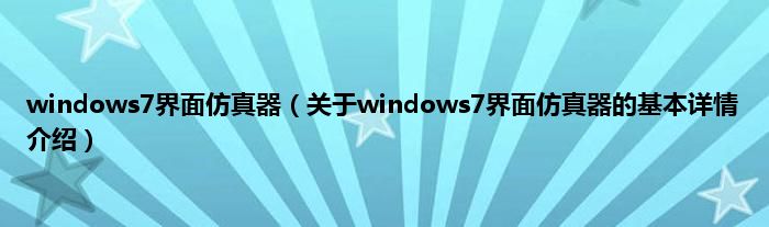 本文关于windows7界面仿真器的基本详情介绍就讲解完毕,希望对大家有所帮助。