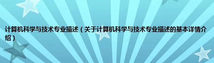 本文关于计算机科学与技术专业描述的基本详情介绍就讲解完毕,希望对大家有所帮助。