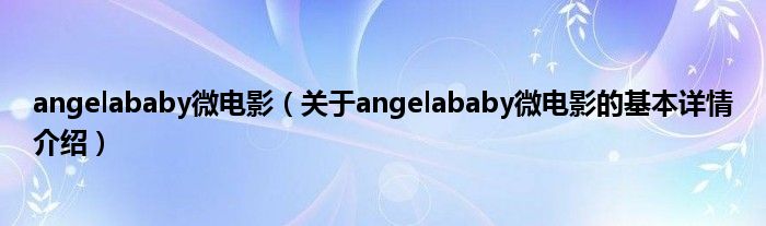 本文关于angelababy微电影的基本详情介绍就讲解完毕,希望对大家有所帮助。