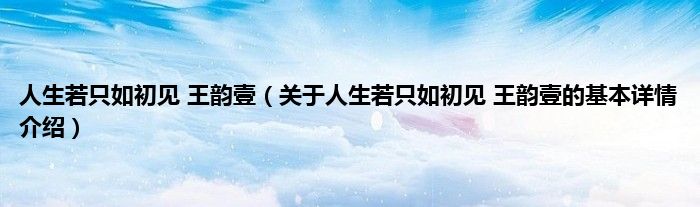 人生若只如初见 王韵壹(关于人生若只如初见 王韵壹的基本详情介绍)