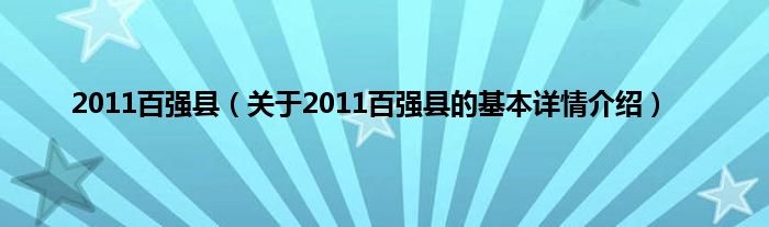 本文关于2011百强县的基本详情介绍就讲解完毕,希望对大家有所帮助。