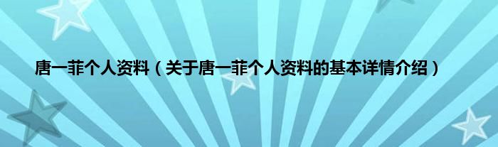 本文关于唐一菲个人资料的基本详情介绍就讲解完毕,希望对大家有所帮助。