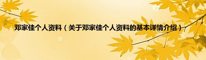本文关于邓家佳个人资料的基本详情介绍就讲解完毕,希望对大家有所帮助。