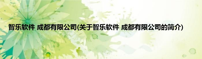本文关于智乐软件 成都有限公司的简介就讲解完毕,希望对大家有所帮助。