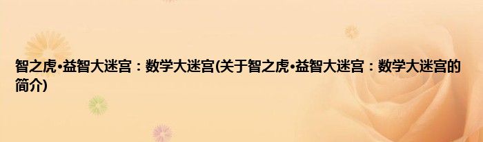 本文关于智之虎·益智大迷宫:数学大迷宫的简介就讲解完毕,希望对大家有所帮助。