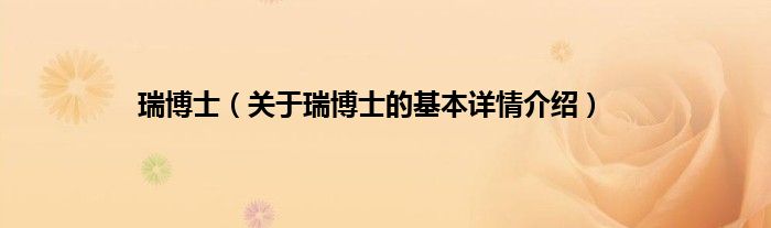本文关于瑞博士的基本详情介绍就讲解完毕,希望对大家有所帮助。