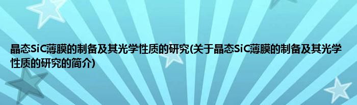 本文关于晶态SiC薄膜的制备及其光学性质的研究的简介就讲解完毕,希望对大家有所帮助。