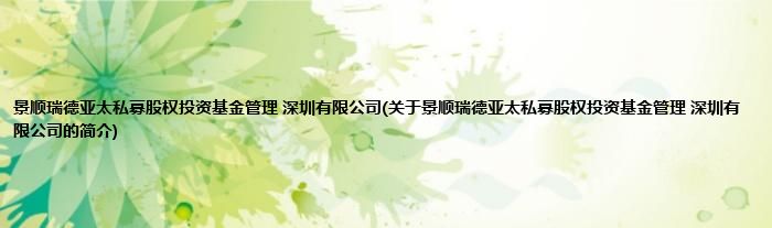 本文关于景顺瑞德亚太私募股权投资基金管理 深圳有限公司的简介就讲解完毕,希望对大家有所帮助。