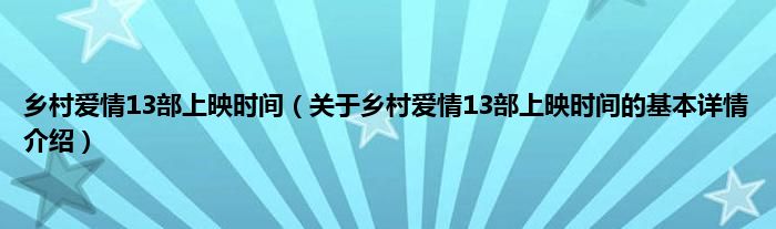 本文关于乡村爱情13部上映时间的基本详情介绍就讲解完毕,希望对大家有所帮助。
