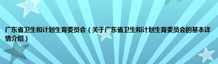 本文关于广东省卫生和计划生育委员会的基本详情介绍就讲解完毕,希望对大家有所帮助。