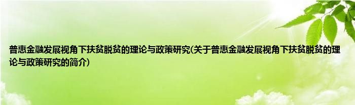 本文关于普惠金融发展视角下扶贫脱贫的理论与政策研究的简介就讲解完毕,希望对大家有所帮助。