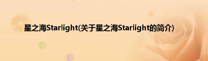 大家好,星之海Starlight,关于星之海Starlight的简介很多人还不知道,现在让我们一起来看看吧!