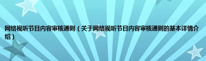 本文关于网络视听节目内容审核通则的基本详情介绍就讲解完毕,希望对大家有所帮助。