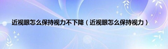 以上就是【近视眼怎么保持视力不下降,近视眼怎么保持视力】相关内容。