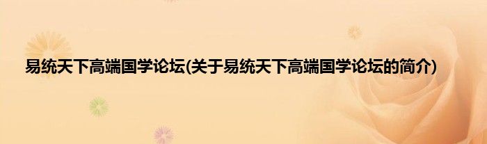 易统天下高端国学论坛(关于易统天下高端国学论坛的简介)