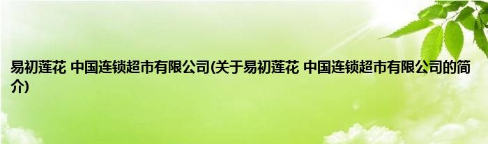 大家好,易初莲花 中国连锁超市有限公司,关于易初莲花 中国连锁超市有限公司的简介很多人还不知道,现在让我们一起来看看吧!
