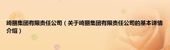 本文关于绮丽集团有限责任公司的基本详情介绍就讲解完毕,希望对大家有所帮助。