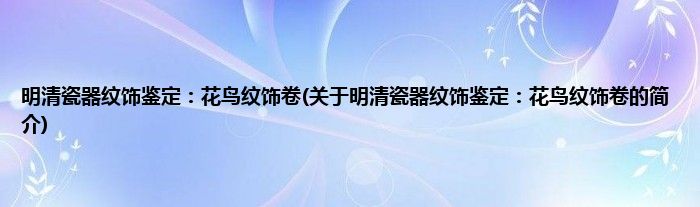 本文关于明清瓷器纹饰鉴定:花鸟纹饰卷的简介就讲解完毕,希望对大家有所帮助。
