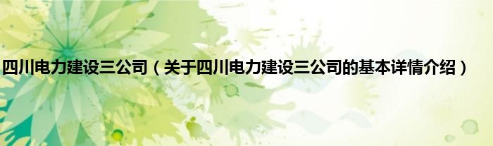 本文关于四川电力建设三公司的基本详情介绍就讲解完毕,希望对大家有所帮助。