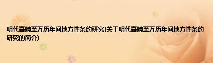 大家好,明代嘉靖至万历年间地方性条约研究,关于明代嘉靖至万历年间地方性条约研究的简介很多人还不知道,现在让我们一起来看看吧!