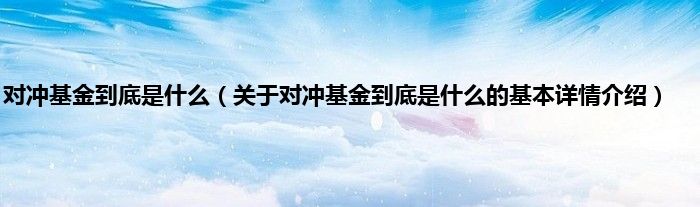 本文关于对冲基金到底是什么的基本详情介绍就讲解完毕,希望对大家有所帮助。