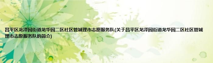 本文关于昌平区龙泽园街道龙华园二区社区管城理市志愿服务队的简介就讲解完毕,希望对大家有所帮助。