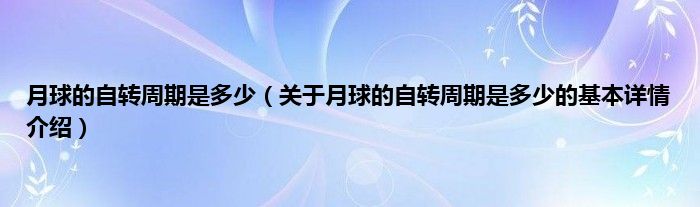 本文关于月球的自转周期是多少的基本详情介绍就讲解完毕,希望对大家有所帮助。