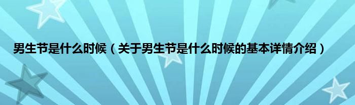 本文关于男生节是什么时候的基本详情介绍就讲解完毕,希望对大家有所帮助。