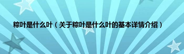 本文关于粽叶是什么叶的基本详情介绍就讲解完毕,希望对大家有所帮助。