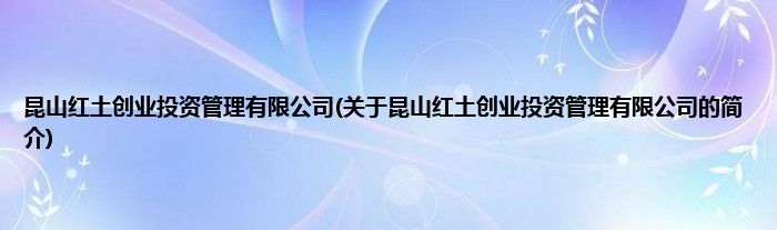 本文关于昆山红土创业投资管理有限公司的简介就讲解完毕,希望对大家有所帮助。